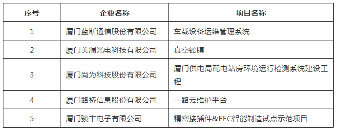 2019年廈門市智能制造試點(diǎn)示范企業(yè)名單